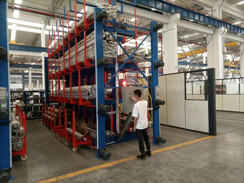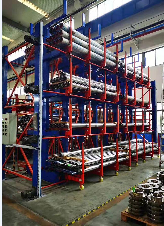 本產(chǎn)品品名為電動伸縮式懸臂貨架,具有懸臂伸縮存儲以達(dá)到節(jié)省空間及存取方便等特點;廣泛應(yīng)用于各種管材、型材、軋輥等異形管件的存儲;可滿足客戶存取方便、按需取用、節(jié)省空間的需求; 主要存取方式以行吊配合綁繩存取,配2臺登高車,方便最上層掛繩存取貨物。二、主要結(jié)構(gòu)及工作原理: